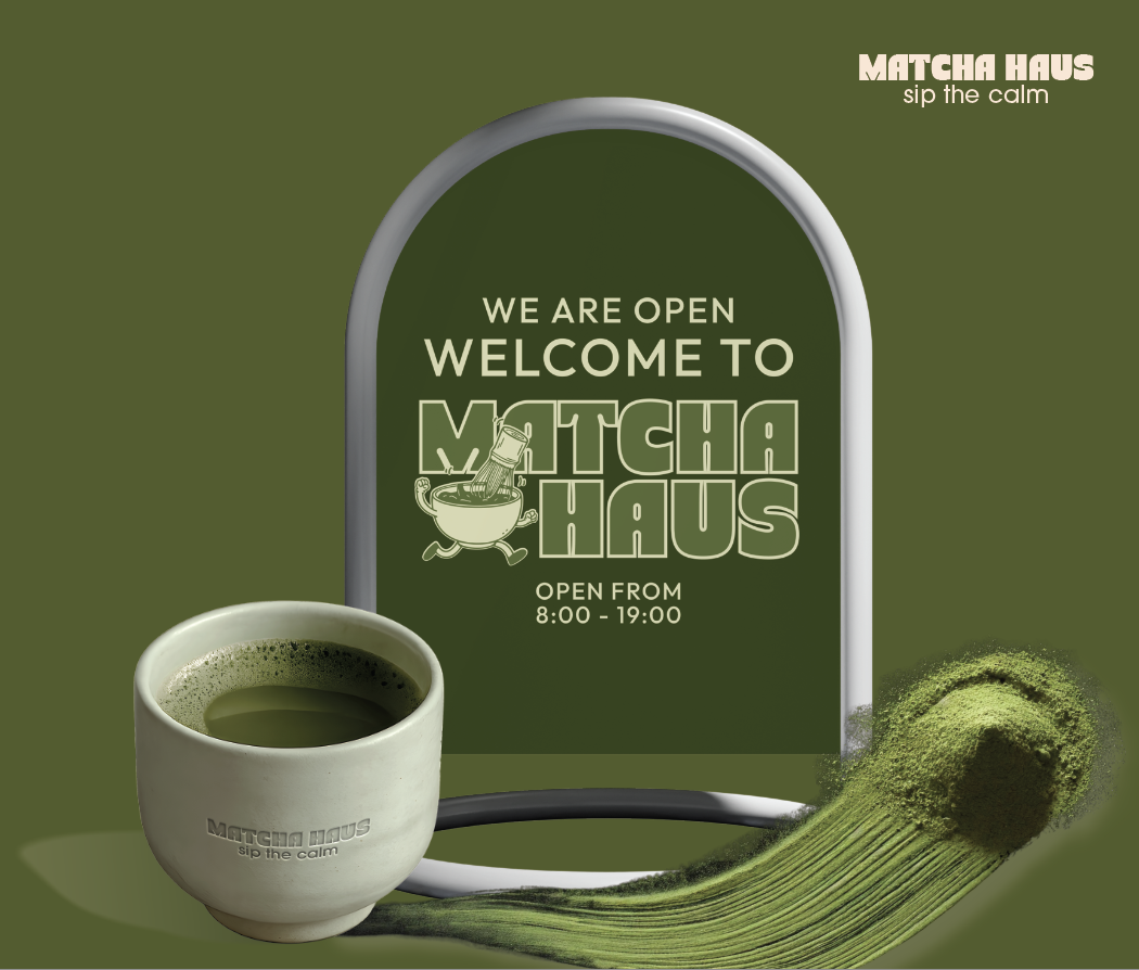 El proyecto consistió en la creación del sistema de identidad visual para Matcha Haus, una marca conceptual que fusiona la tradición japonesa del té matcha con un enfoque contemporáneo y estético. El objetivo fue construir una marca que transmitiera calma, balance y energía visual, posicionándola como un espacio de bienestar moderno.